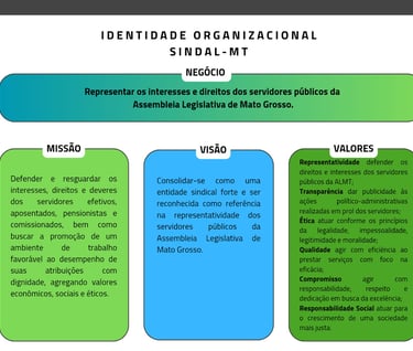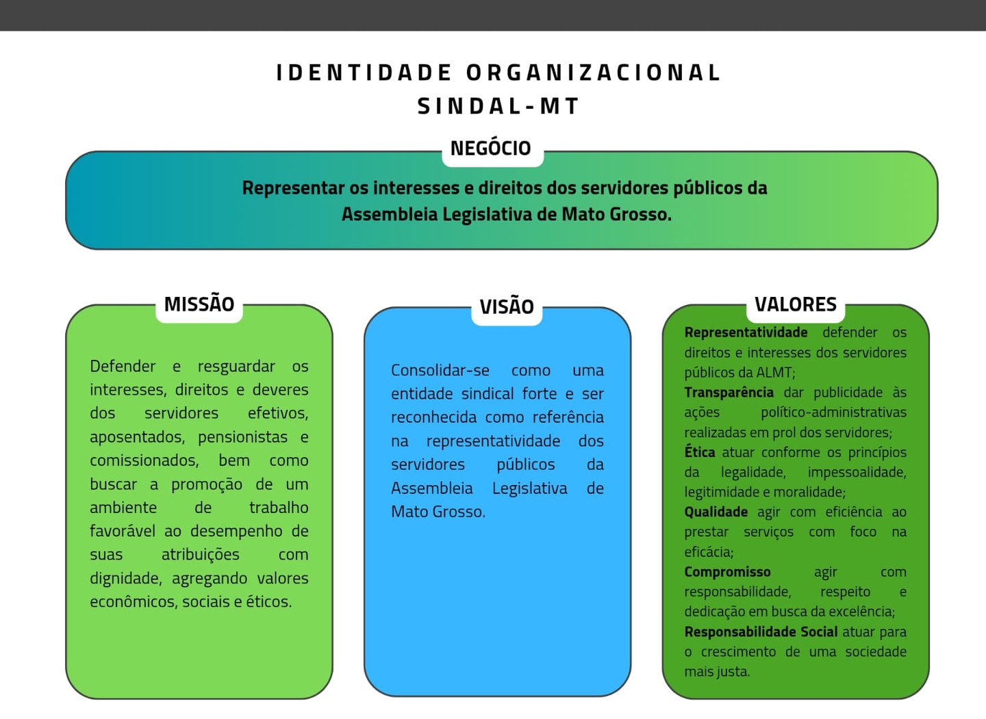A Identidade Organizacional do SINDAL representa a base que orienta todas as ações e decisões da instituição em defesa dos servidores da Assembleia Legislativa do Estado de Mato Grosso.